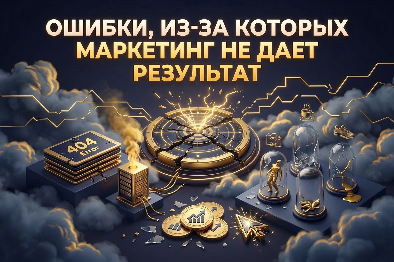 Проблема обычно не в одном инструменте, а в системных ошибках. Маркетинг не дает результат, когда он строится без стратегии, без понимания аудитории, без нормальной аналитики и без связи между трафиком, сайтом и продажами.